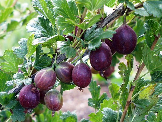 Крыжовник Сливовый - сорт раннего срока созревания. Куст сильнорослый (высота 80-100 см), крона приподнятая, ветви направлены вертикально. Шиповатость побегов сильная, шипы расположены по всей длине побега. Ягоды крупные, овальные, темно-красные, при полном созревании почти черные, неопушенные, с восковым налетом. Ягоды отличных вкусовых качеств, ароматные, сладкие, со сливовым ароматом. Сорт высокозимостойкий, засухоустойчивый, урожайный (4,5 кг/куст), устойчив к мучнистой росе.