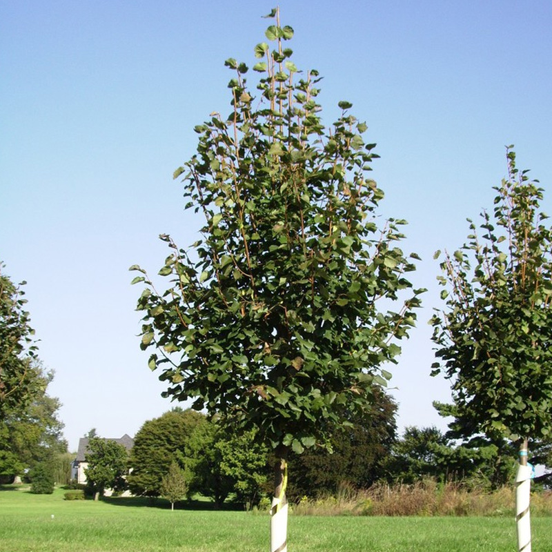 Саженцы липы мелколистной Greenspire отлично смотрятся в аллеях, групповых насаждениях и смешанных группах. Подходят для содержания на пасеках.Листья имеют яйцевидную либо округлую форму и размер от 7 до 10 см. Крона у молодых растений пирамидальная, позже становится похожей на широкий овал. Цвет листвы темно-зеленый с кожаным блеском. Осенью становятся желтыми.Мелкие желтовато-белые, собранные в зонтики цветки, распускаются в июле.Шаровидные или овальные плоды-орешки созревают в октябре.Среди достоинств, кроме медоношения, отмечается приспособляемость к условиям выращивания, стойкость к ветрам, болезням и вредителям.