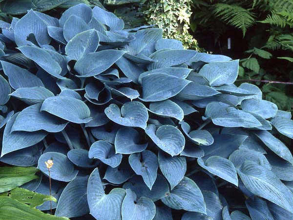 Хоста Halcyon - куст до 50 см высотой. Размер цветка: до 5 см длиной. Листья темно-голубые среднего размера 16 х 10 см, цветки лавандовые. Цветет в июне - июле. Морозостойка, однако осенью, когда снег ещё не выпал, а уже существенно подмораживает, рекомендуется замульчировать утепляющим материалом.