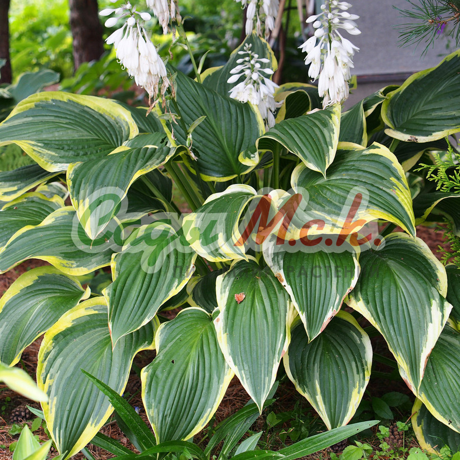 Хоста гибридная Леди Гиневера - высота куста 60 см, ширина 75 см. Листья кремово-желтые с узкой зеленой каймой, куст раскидистый. Хосты эффектны в одиночных посадках на фоне газона. Подходят для бордюров, рабаток, смешанных групп. Красивы около водоемов. Теневыносливы, но есть гибриды, способные расти под лучами солнца. На одном месте Хоста гибридная Леди Гиневера может расти более 20 лет.