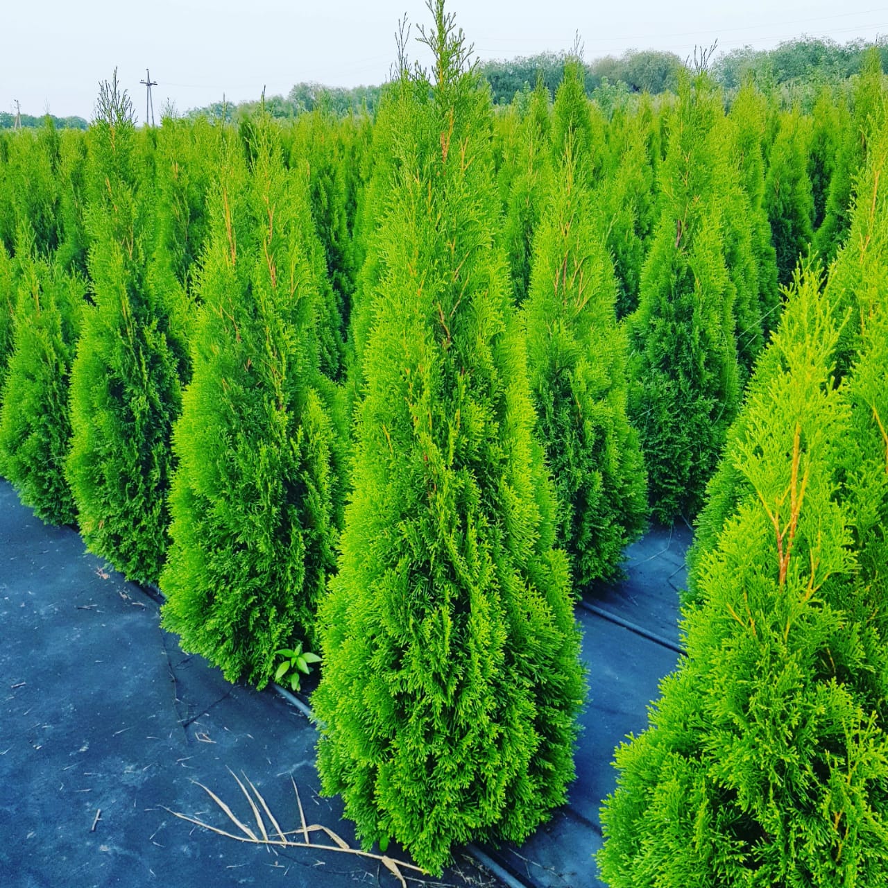 Достоинством данного сорта является то, что он медленно растет и доживает до 150 лет. Туя Смарагд, годовой прирост которого за год достигает 20см в высоту, и в ширину до 7 см. Этим пользуются любители красивого и постоянного. Кроме того, Смарагд отлично подходит для создания практически любых садовых скульптур. Учитывая требования к произрастанию и климатическим условиям, это наиболее подходящее дерево из хвойных культур для нашей страны. Может выращиваться в качестве контейнерной культуры, использоваться в создании живой изгороди, участвовать в композициях. Это уникальной красоты дерево украсит любой приусадебный участок. Кроме того, оно замечательно очищает и ионизирует воздух. Является одним из лучших видов колоновидных туй, которые характеризуются умеренным ростом.