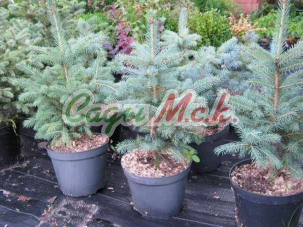 Колючая ель Глаука (‘Glauca’) - Это дерево отличается большими размерами, крона его густая, имеет форму широкого конуса с диаметром до 6–8 м и острой верхушкой. Каждый год растение прибавляет по 30 см в высоту и 15 см в ширину. Во взрослом возрасте высота этого сорта голубой ели может достигать 25 м, а диаметр ствола — 1,2 м. В природных условиях дерево живет до 400 лет.